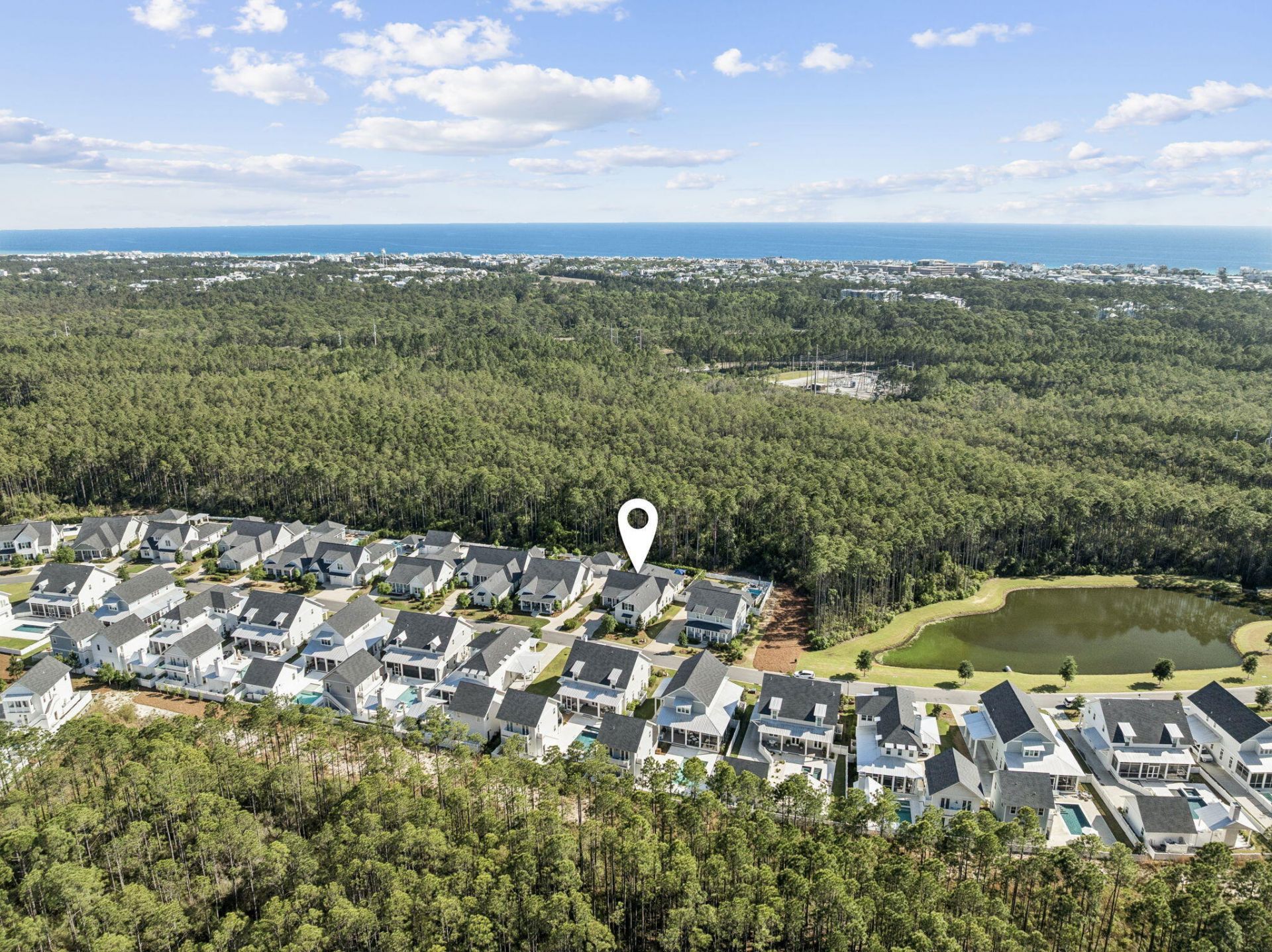Positioned in the highly sought-after Greenway phase of WaterSound Origins, this custom-built Huff home offers a rare combination of privacy, functionality, and move-in-ready convenience. Ideally located at the front of the neighborhood for quick access to Highway 98, the property sits on a quiet street with no future construction and backs to a protected wooded preserve--ensuring long-term privacy.This thoughtfully designed 5-bedroom residence features a unique and versatile layout. A standout feature is the private 5th BEDROOM SUITE above the garage, complete with kitchenette (beverage refrigerator, sink, and microwave), full bath, and a separate door at the top of the stairs for added privacy. With interior access (no exterior stairs), it's ideal for an in-law suite, college student, au pair, college student, or dedicated office.The main level includes four bedrooms, with a split floor plan that places the primary suite at the rear of the home for maximum privacy. The primary offers abundant natural light, a spa-like bath with dual vanities, soaking tub, walk-in shower, and a custom-built closet system. At the front of the home, two bedrooms share a full bath, while a third oversized bedroom features its own en suite and walk-in closet.The chef's kitchen is designed for both daily living and entertaining, highlighted by a large center island with seating for four, extensive cabinetry with upper lighting, and a spacious walk-in pantry. Premium appliances include a 36 WOLF range, Sub-Zero built-in refrigerator, and Sharp microwave drawer. The open-concept living area is expansive and filled with natural light, anchored by a gas fireplace.Additional highlights include an oversized laundry room with ample storage and a seamless transition to the outdoor living space. The backyard is a true retreat, featuring a full-width screened porch with , multiple seating and dining areas, and an oversized pool and spa with sun ledge. A gas stub is in place for a future outdoor kitchen, and the preserve setting ensures exceptional privacy.Offered furnished with Restoration Hardware pieces NEGOTIABLE, this home presents a turnkey opportunity--without the wait to build.