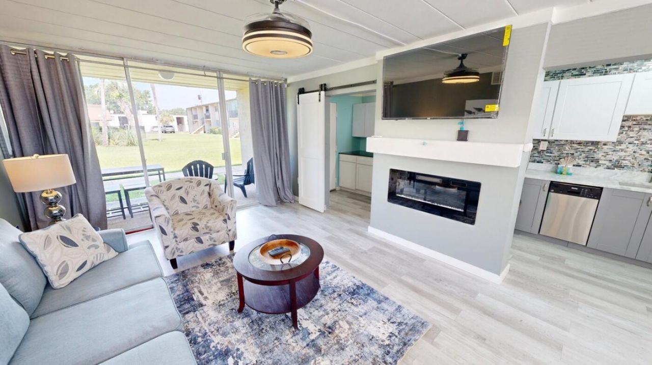 Turnkey, fully furnished, VA-approved condo in the waterfront community of Sea Palms that allows short-term rentals--this is the ideal investment, second home, or primary residence opportunity in Fort Walton Beach. -Buyer incentives are available!-This beautifully renovated first floor unit is truly move-in or rent-ready and has a strong rental history, making it a proven income-producing property. Inside, you'll find a stunning modern kitchen with shaker-style cabinetry, ceiling-height tile backsplash, granite countertops, and stainless steel appliances, including a built-in oven/microwave combo, smart refrigerator, and 2-burner induction cooktop. The open living space features luxury vinyl plank flooring throughout, a built-in electric fireplace, and a floor-to-ceiling sliding glass door with views of the community pool. The bathroom has been fully upgraded with a luxury tiled shower featuring LED lighting and a digital temperature/time display, along with an anti-fog mirror with built-in lighting. Sea Palms offers a beautiful community pool and stunning views of the intercoastal sound waterway, enhancing the coastal lifestyle experience for owners and guests alike. The HOA fee of $473/month includes water, gas, sewer, trash, landscaping, the condo insurance policy, and pool maintenance, keeping ownership simple and predictable. Major systems have been updated with a 2022 HVAC and 2022 water heater. With everything already in place, this is a rare opportunity to own a fully updated, low-maintenance, income-ready property in a highly desirable waterfront setting.All descriptions and dimensions are believed to be accurate but if deemed important are to be verified by buyer.